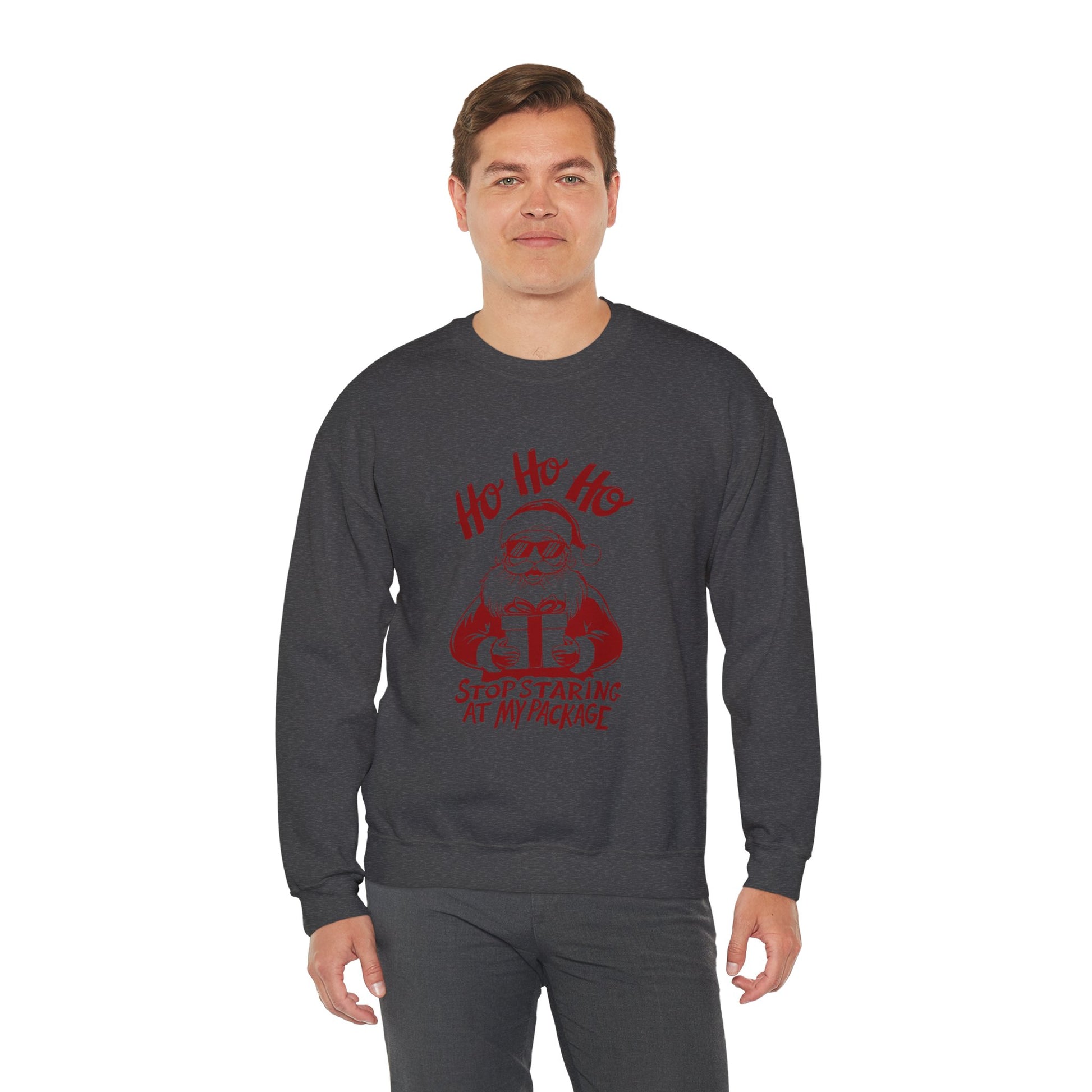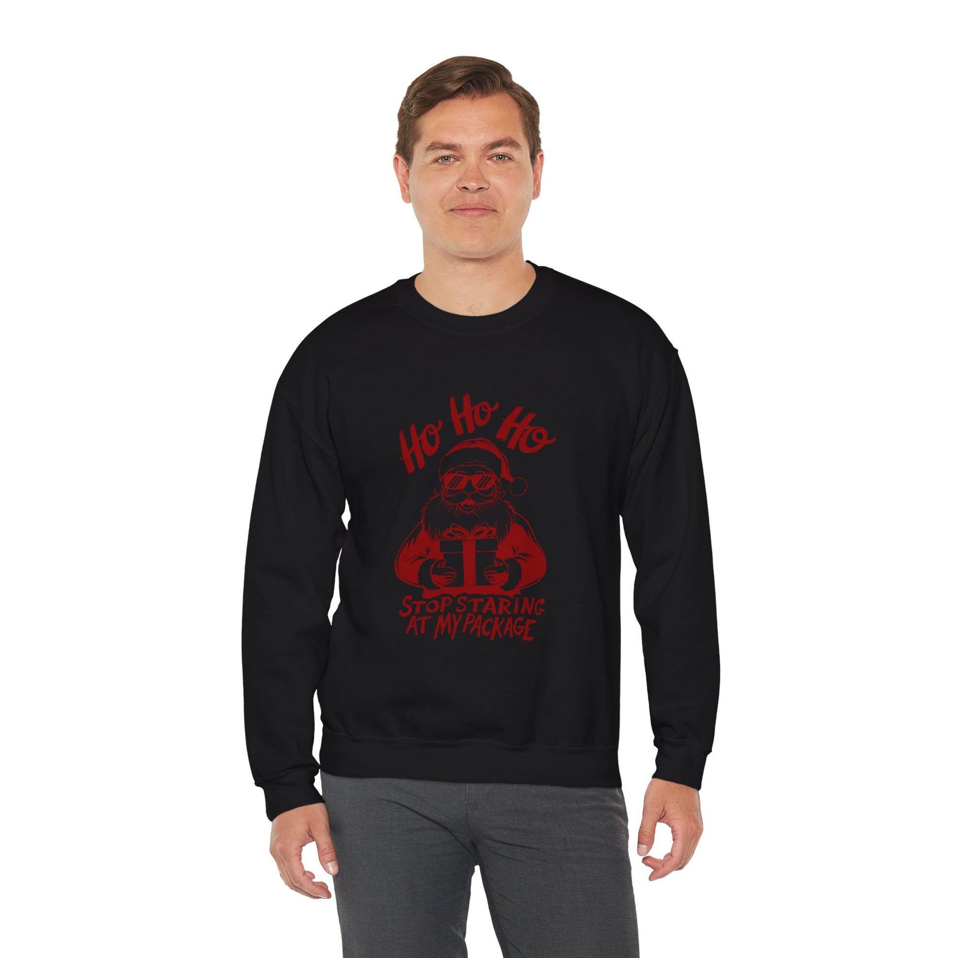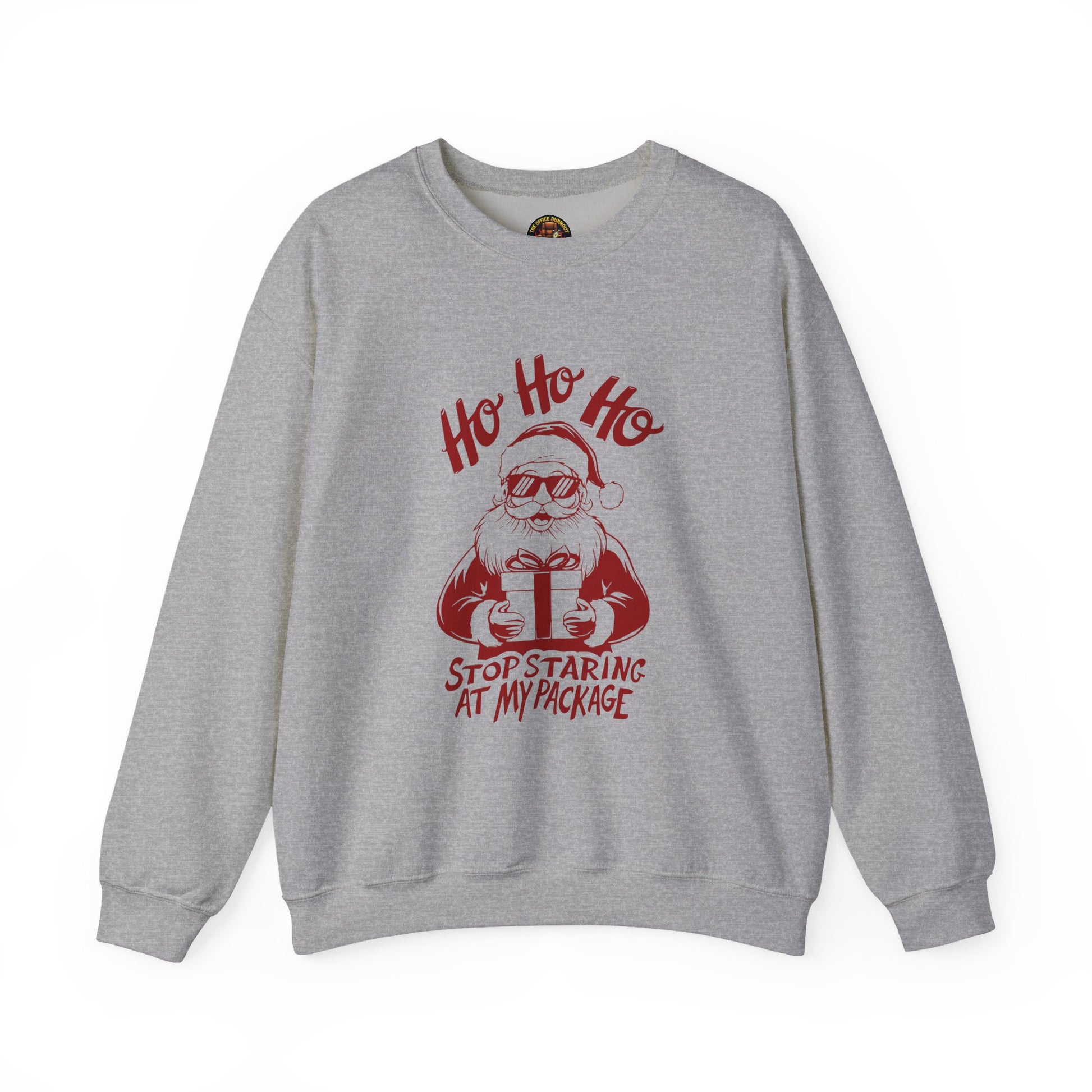 “Ho Ho Ho, Stop Staring at My Package” Sweatshirt — The Naughty Santa Edition