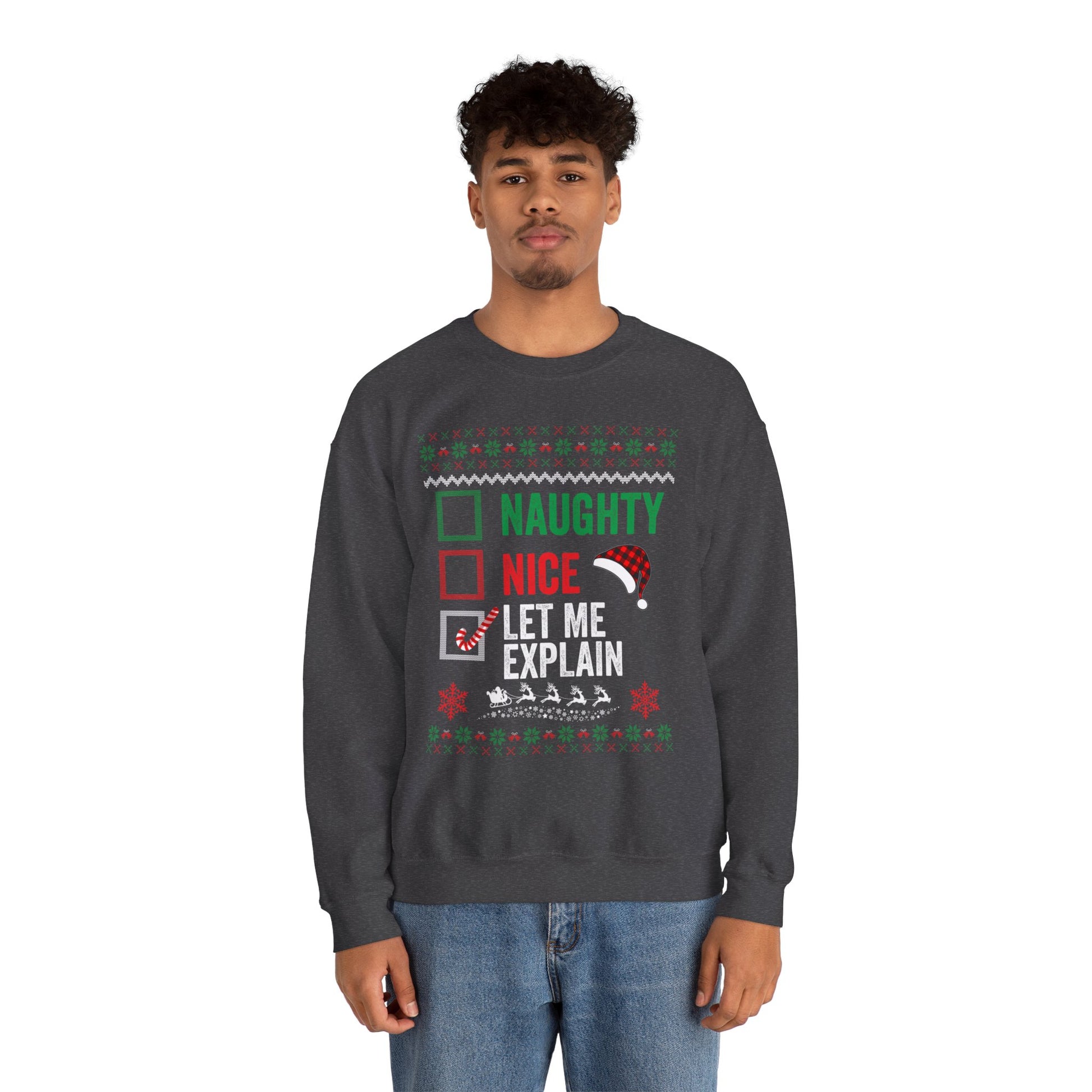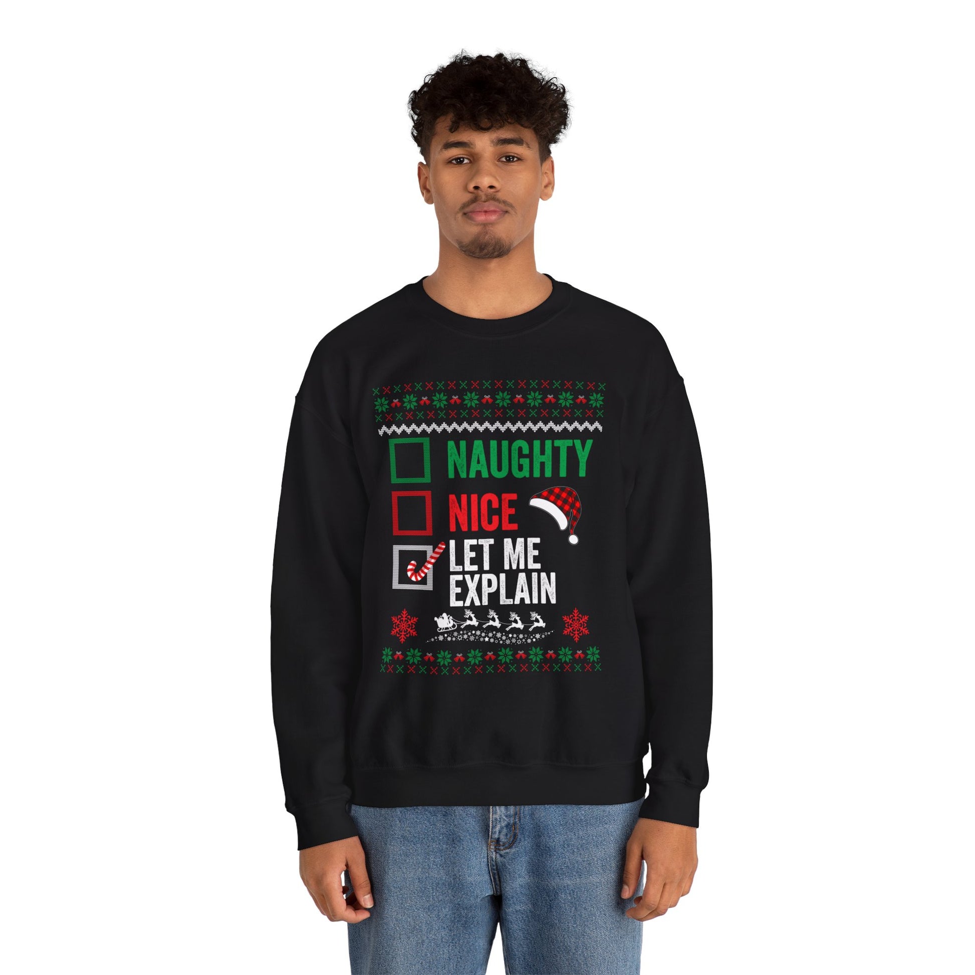 “Naughty, Nice, Let Me Explain” Sweatshirt — The Holiday Alibi Edition