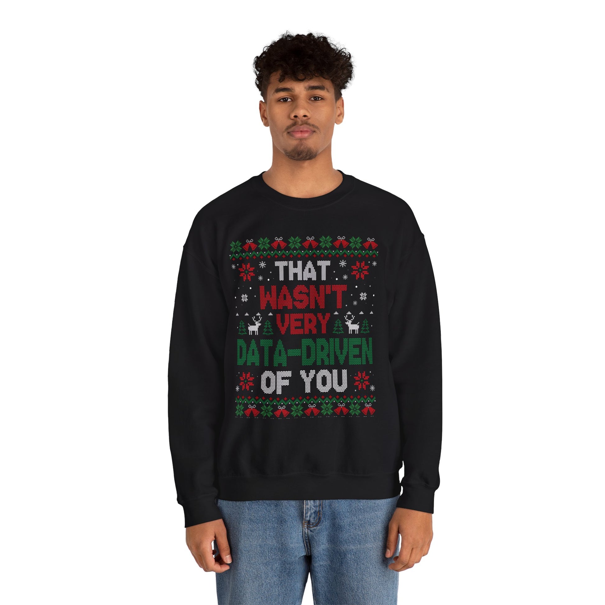 The “That Wasn’t Very Data-Driven of You” Sweatshirt is the ultimate holiday fit for the office nerd with a sense of humor (and maybe a superiority complex). Featuring a classic ugly sweater pattern with bold festive lettering, it’s cozy, clever, and just judgmental enough to make your boss rethink that last “gut decision.”